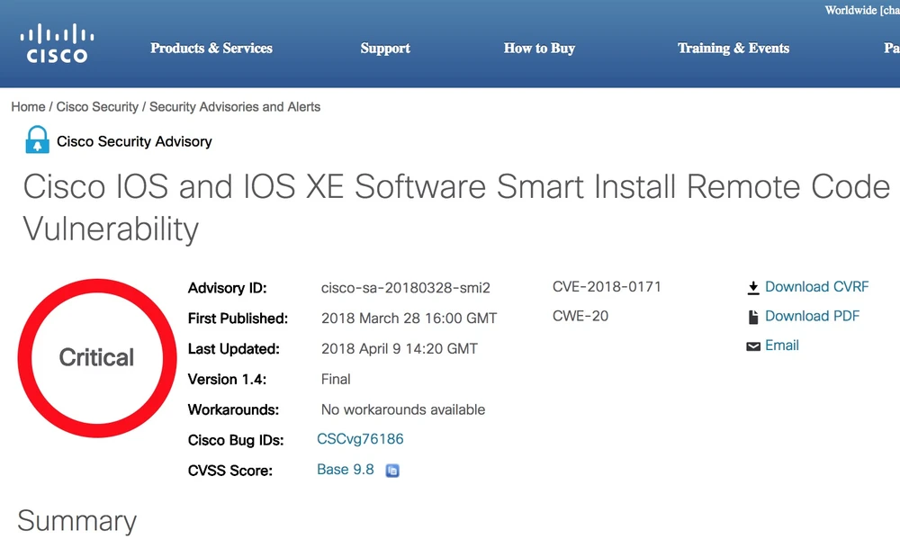 Lỗ hổng này (mã lỗi CVE-2018-0171) tồn tại bên trong tính năng Smart Install, giúp đơn giản hóa việc cài đặt, triển khai thiết bị nhanh hơn và thường thì tính năng này sẽ được kích hoạt mặc định.