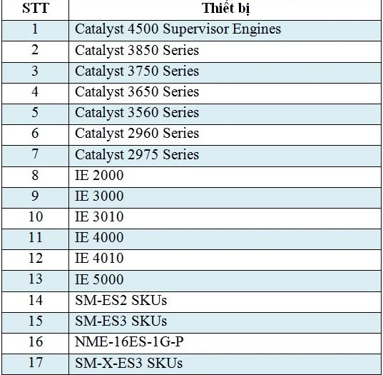 Dưới đây là danh sách các thiết bị bị ảnh hưởng: