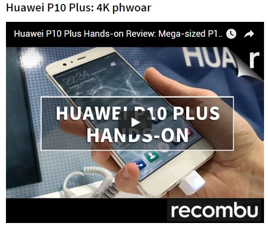 Recombu đã ví chiếc Huawei P10 Plus như một sản phẩm “xuất sắc nhất MWC 2017”. Điểm đặc biệt chú ý của sản phẩm là màn hình 5.5 inches, chế độ HD, camera và bộ vi xử lý. Recombu có 4.6 triệu độc giả mỗi tháng.