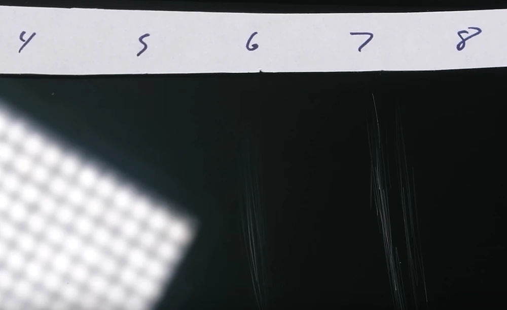 Bắt đầu là bài thử nghiệm chống trầy xước, màn hình của Huawei P20 Pro chỉ chịu được tối đa bút thử ở mức 5 (dựa trên thang đo độ cứng Mohs), từ mức 6 trở đi bắt đầu bị xước và xuất hiện vết nứt.