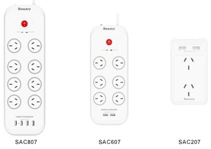 Ngoài ra, dòng sản phẩm ổ cắm điện SAC theo tiêu chuẩn của Úc có tới 3 mẫu khác nhau là SAC207, SAC607 và SAC807. Trong đó mẫu SAC607 có 4 ổ điện, 2 cổng sạc USB, mẫu SAC807 sở hữu đến 8 ổ điện, 4 cổng sạc USB trong khi SAC207 là mẫu ổ điện loại nhỏ chỉ sở hữu 2 ổ điện và 2 cổng sạc USB.