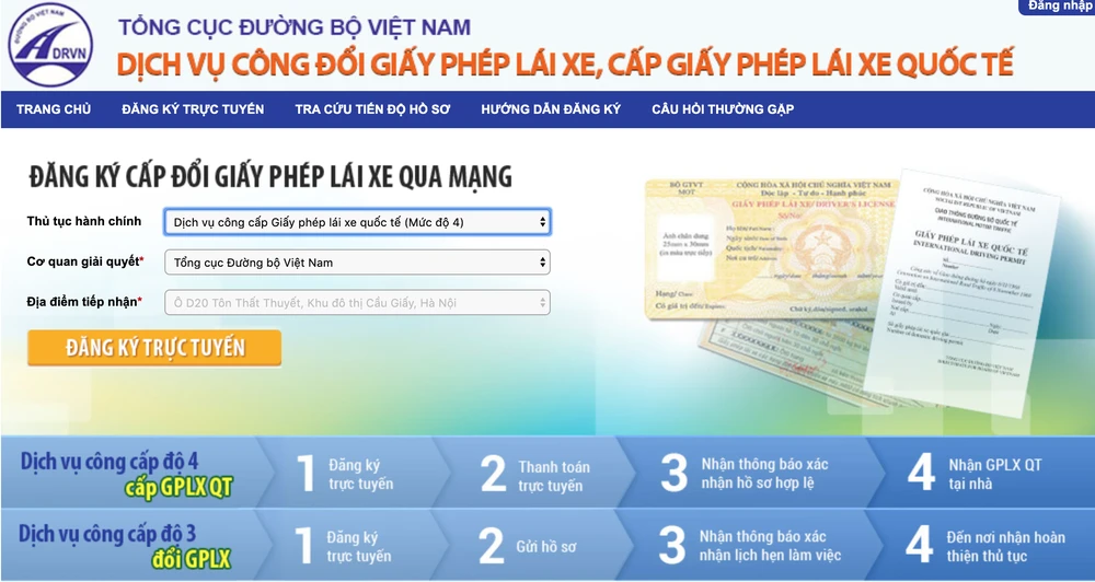 Lưu ý, dịch vụ đổi giấy phép lái xe quốc tế qua mạng áp dụng đối với người Việt Nam, người nước ngoài có thẻ thường trú tại Việt Nam, có giấy phép lái xe quốc gia do Việt Nam cấp bằng vật liệu PET còn giá trị sử dụng.