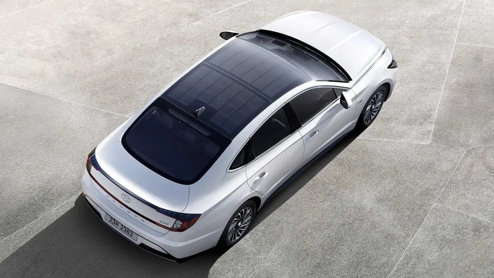 Mẫu Sonata Hybrid khá nổi bật với tấm pin năng lượng mặt trời trên mái xe. Theo thông tin từ nhà sản xuất, xe có thể chạy thêm được khoảng 1.300 km/năm với điều kiện được sạc năng lượng mặt trời 6 tiếng/ngày.