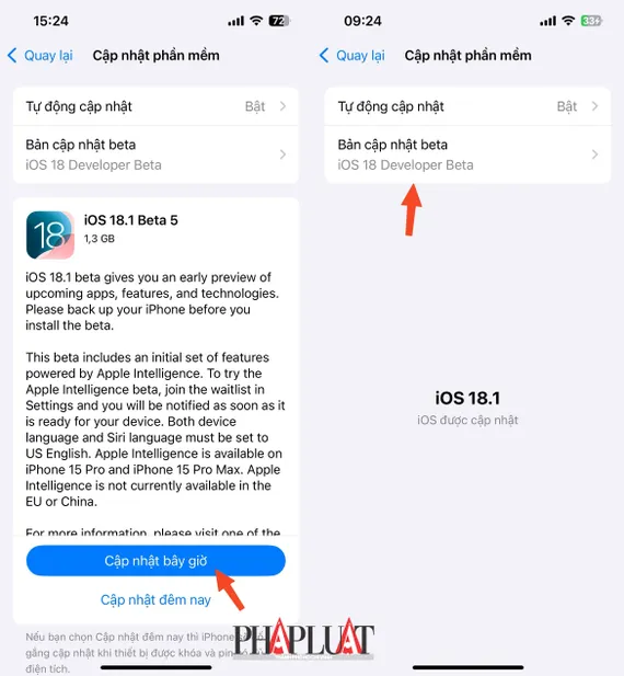 Bạn có thể trải nghiệm thử iOS 18.1 beta 5 bằng cách truy cập vào Settings (cài đặt) - General (cài đặt chung) - Software update (cập nhật phần mềm) - Beta updates (bản cập nhật beta), sau đó thiết lập thành iOS 18 Public Beta.