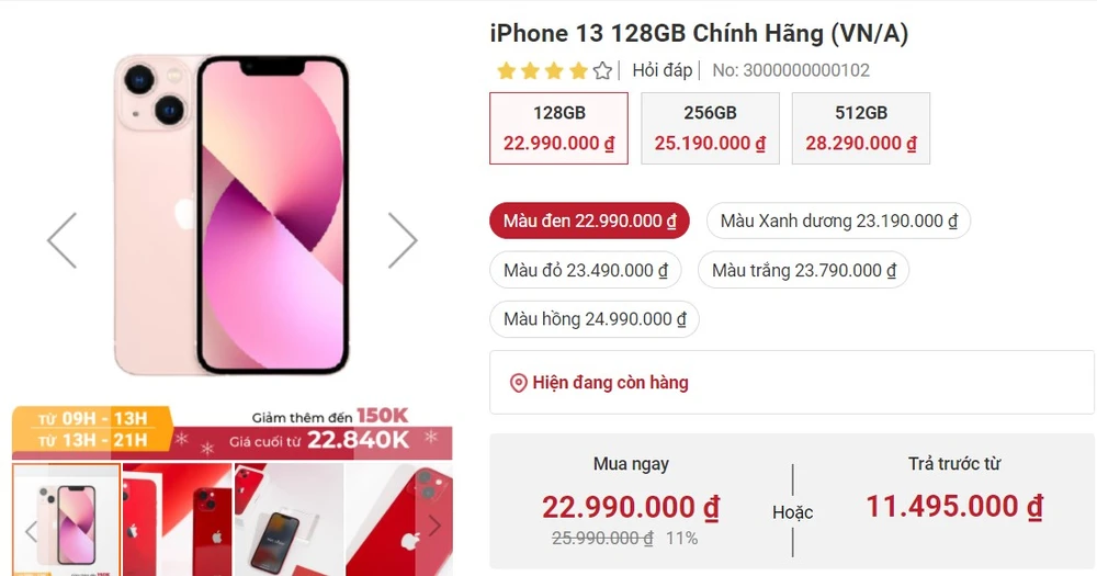 iPhone 13 128 GB giảm giá chỉ còn 22,8 triệu đồng dịp Giáng sinh. Ảnh: TIỂU MINH