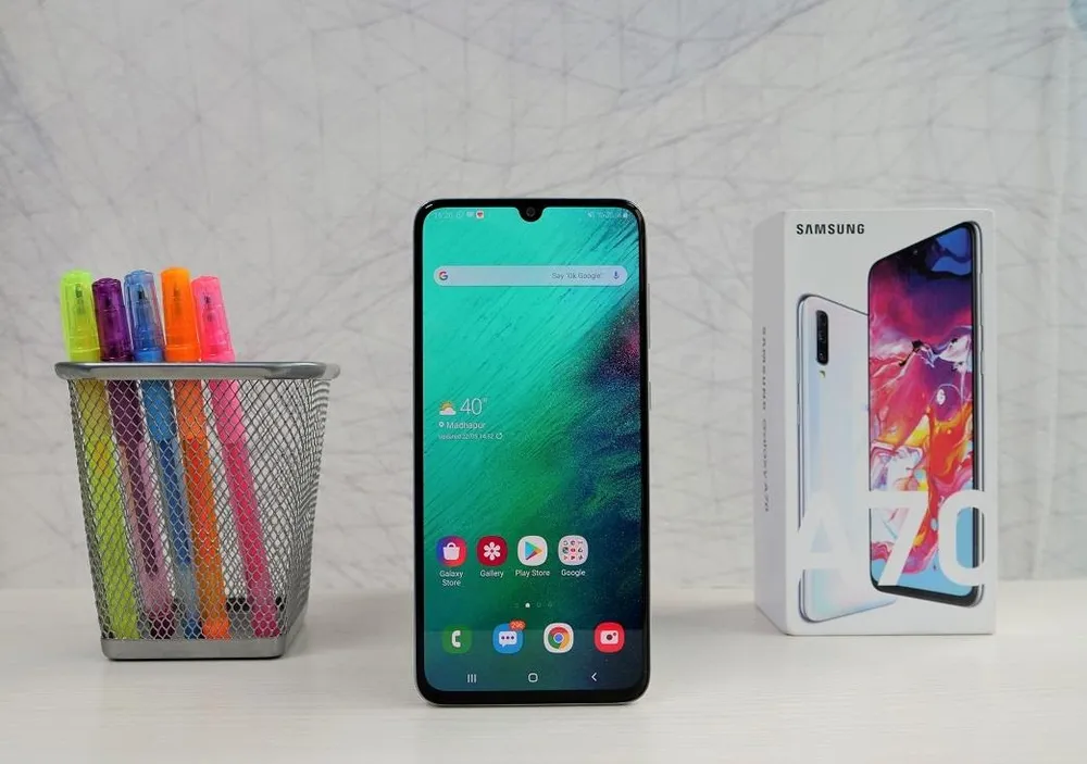 Samsung A70 được trang bị ba camera sau, camera chính sử dụng cảm biến 32 MP (khẩu độ f/1.7), camera thứ hai 8 MP cho khả năng chụp ảnh góc siêu rộng (123 độ) và camera 5 MP dùng để đo độ sâu trường nhằm thực hiện chụp ảnh chân dung có xóa phông. Hiện tại sản phẩm đang được bán ra với mức giá chỉ 7,69 triệu đồng (giảm 1,6 triệu đồng so với trước đó).