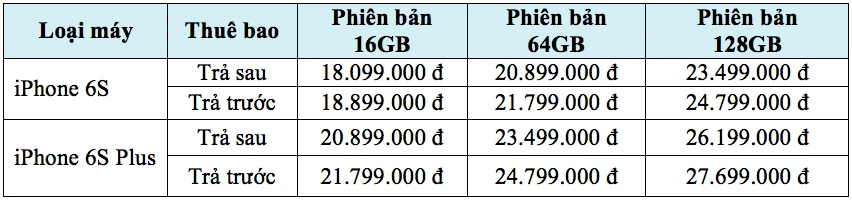 Không phân biệt giá bán cho thuê bao trả trước và trả sau, mà thay vào đó, mỗi phiên bản iPhone 6s bên Viettel sẽ xê xích nhau khoảng 3 triệu đồng.