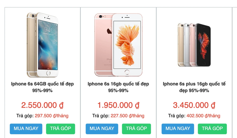 Theo ghi nhận tại Galaxydidong, hiện tại iPhone 6S 16 GB Like new (đã qua sử dụng) có giá khoảng 1,9 triệu đồng, phiên bản có bộ nhớ trong 64 GB có giá 2,5 triệu đồng. Nếu thích màn hình to hơn, người dùng có thể chọn mua iPhone 6S Plus, giá chỉ từ 3,4 - 4 triệu đồng tùy dung lượng lưu trữ.