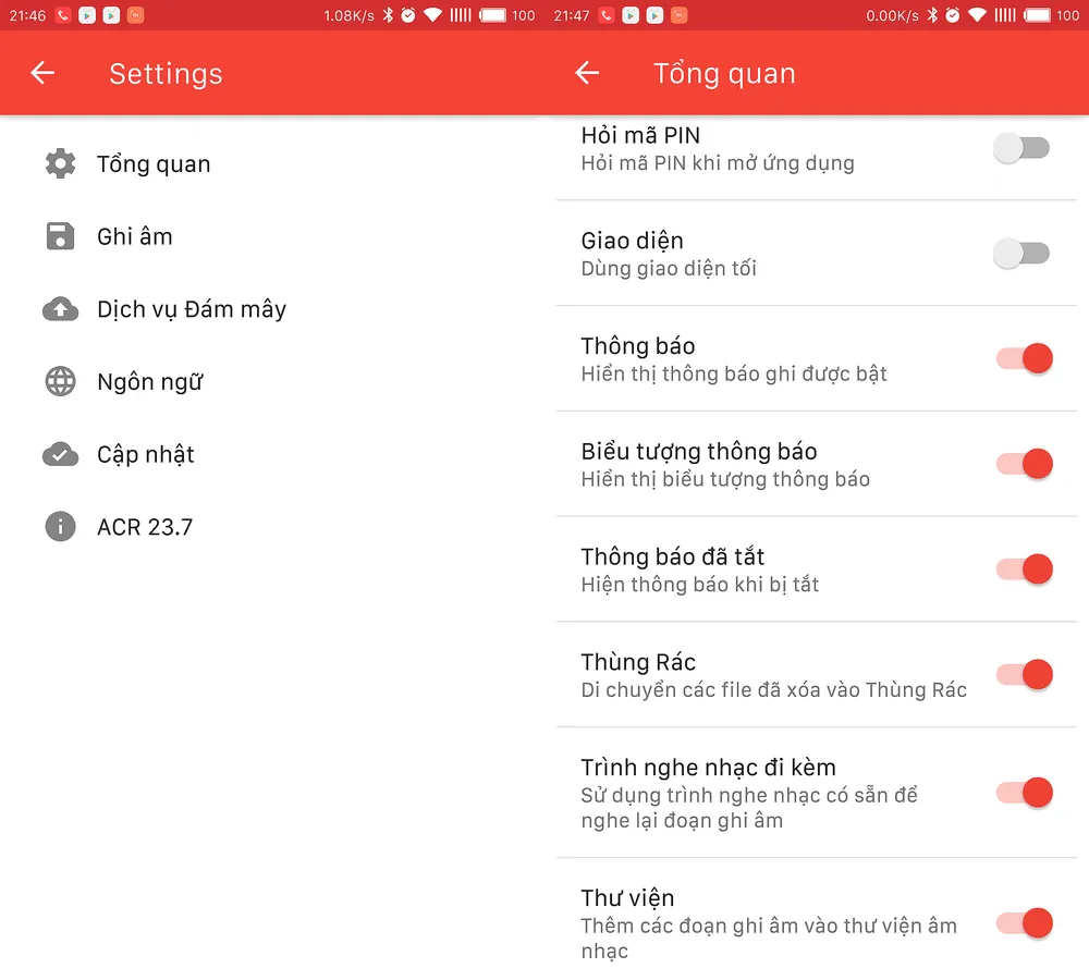 Ngoài ra, bạn còn có thể thay đổi giao diện, kích hoạt tính năng thông báo… và một số tùy chọn khác khá hữu ích như thùng rác, điều này đồng nghĩa với việc nếu lỡ tay xóa mất tập tin ghi âm, người dùng có thể tìm lại trong thùng rác. Bên cạnh đó, bạn cũng có thể lựa chọn nơi lưu trữ, tự động xóa tập tin ghi âm sau x ngày, lọc âm thanh, đồng bộ hóa dữ liệu lên các dịch vụ đám mây như Dropbox, Google Drive, One Drive…