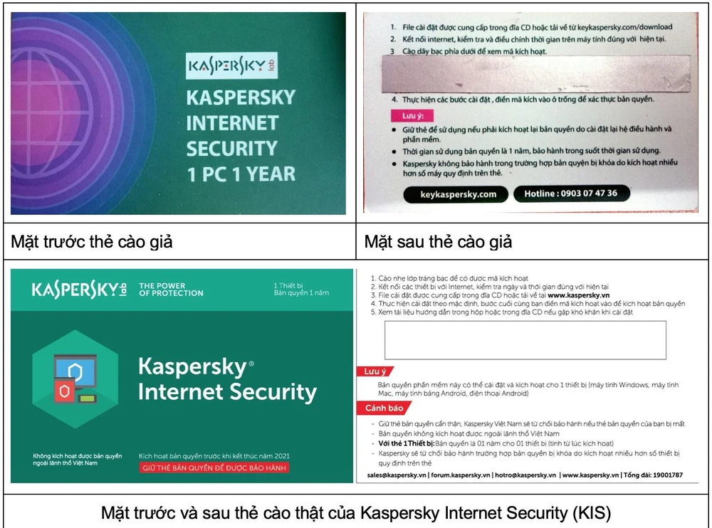 Thật vậy! Tiết kiệm được 50% so với giá bán nhưng người tiêu dùng đưa máy tính hay thiết bị của mình gặp ngay nhiều nguy cơ. Trường hợp đầu tiên liên quan vi phạm bản quyền, mã bản quyền "lậu" rao bán vẫn kích hoạt được nhưng là bản không thể dùng chung nhiều máy tính (chỉ cho 1 PC) nhưng được bán chung cho nhiều người, điều này khiến mã bản quyền đó có thể bị hệ thống của Kaspersky nhận diện, chặn và khoá bất cứ lúc nào khiến PC không còn nhận được bảo vệ. Nạn nhân mất tiền oan với hàng giả Kaspersky, không nhận được hỗ trợ từ nhà phân phối chính hãng.