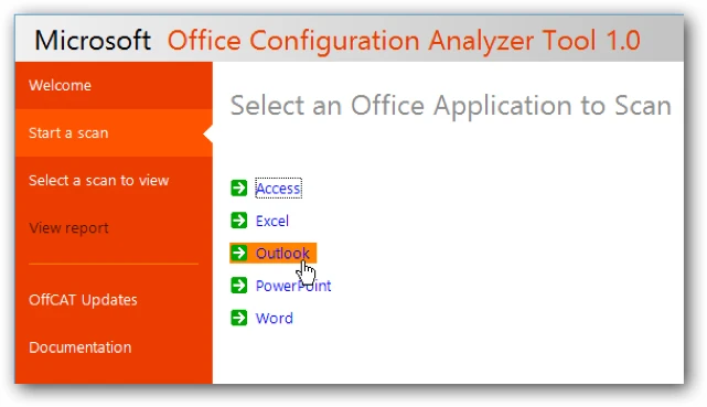 Nếu là lần đầu tiên khởi động, nó sẽ nhắc bạn tiến hành cập nhật lên phiên bản mới nhất. Tiếp theo, tại mục Start a scan, bạn chọn ứng dụng cần sửa lỗi, đặt tên cho nó rồi nhấn Start scanning là được. Lưu ý: đối với Outlook thì bạn cần phải chạy nó thì OffCAT mới sửa lỗi được. Bên cạnh nó, nó còn bao gồm các liên kết hữu ích để hỗ trợ Office 365, Exchange Remote Connectivity Analyzer và các sản phẩm văn phòng hữu ích khác.