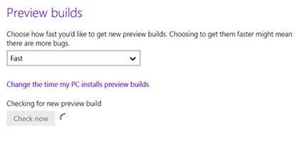 Bây giờ, khi bạn truy cập vào PC Settings > Update and Recovery > Preview builds một lần nữa, bạn sẽ thấy xuất hiện 2 tùy chọn mới là Fast và Slow. Nếu chọn Fast, bạn sẽ nhanh chóng nhận được các bản build mới nhưng kèm theo đó là cũng sẽ có nhiều lỗi hơn và ngược lại.
