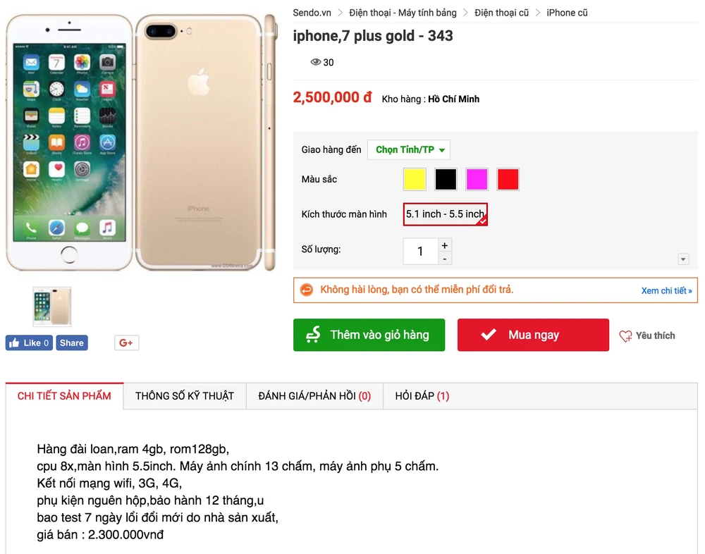 Ở Việt Nam cũng tồn tại rất nhiều trang thương mại điện tử cho phép người tham gia bày bán các sản phẩm kém chất lượng, hàng nhái, hàng giả công khai... mà không hề kiểm soát. Khi thử tìm kiếm từ khóa iPhone 7 Plus trên trang Sendo, bạn sẽ thấy có rất nhiều sản phẩm chỉ có giá khoảng 2,5-3 triệu đồng. Với lời rao là iPhone Đài Loan, RAM 4 GB... và chạy hệ điều hành Android.