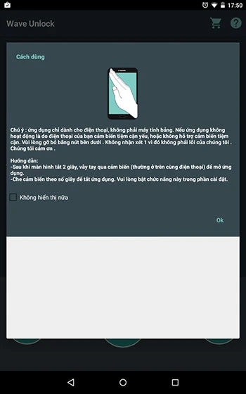 Wave Unlock là phần mềm hỗ trợ mở khóa màn hình bằng cách lướt qua cảm biến thay vì phải bấm nút nguồn rồi chạm để mở khóa như cách cổ điển, giúp bạn hạn chế sử dụng phím nguồn để đỡ bị hư hại. Lưu ý, Wave Unlock chỉ hoạt động tốt trên smartphone và không hỗ trợ đầy đủ cho tablet vì thiếu cảm biến tiệm cận hoặc yếu.