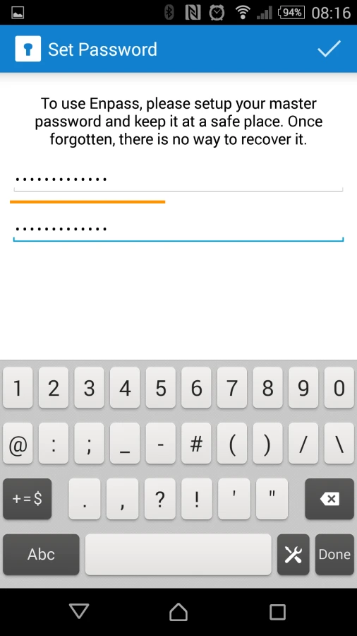 Đầu tiên, người dùng cần tải Enpass tại địa chỉ http://enpass.io/downloads/, bài viết này sẽ giới thiệu các tính năng dựa trên Android, các hệ điều hành khác bạn thực hiện tương tự. Nếu là lần đầu tiên sử dụng, Enpass sẽ yêu cầu bạn đăng kí một tài khoản miễn phí và thiết lập một mật khẩu chính (Master) dùng để đăng nhập. Sẽ có một thông báo hiển thị mức độ mạnh/yếu của mật khẩu, nhưng nguyên tắc chung là nên sử dụng chữ in hoa, chữ thường, số và các kí tự đặc biệt.