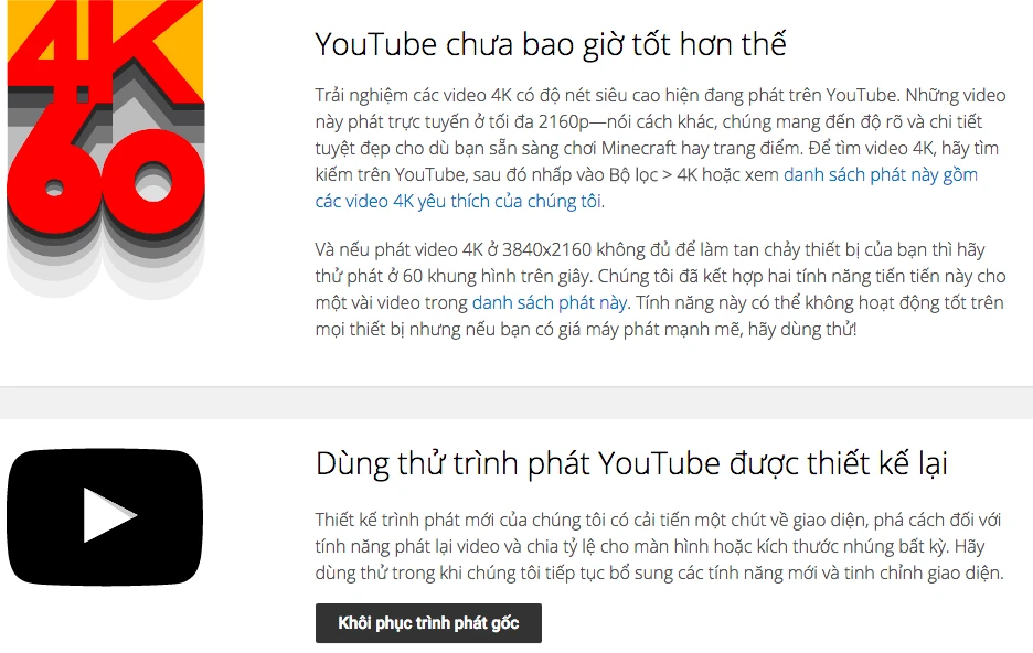 Hiện tại thì giao diện trong suốt này chưa được cung cấp chính thức, do đó bạn cần phải truy cập vào địa chỉ https://www.youtube.com/testtube, kéo xuống bên dưới cùng rồi nhấn vào nút Tải trình phát (Get the player), sau này nếu muốn khôi phục lại mọi thứ như cũ, người dùng cũng vào đây và chọn Khôi phục trình phát gốc.
