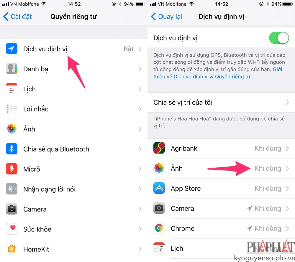 Đầu tiên, bạn hãy truy cập vào Settings (cài đặt) > Privacy (quyền riêng tư) > Location Services (dịch vụ định vị), sau đó tắt bớt các ứng dụng không cần thiết hoặc chỉ cho phép sử dụng vị trí khi dùng thay vì để luôn luôn. Ngoài ra, bạn cũng nên vô hiệu hóa tính năng Hey Siri bằng cách vào Settings (cài đặt) > Siri và vô hiệu hóa tùy chọn Hey Siri.
