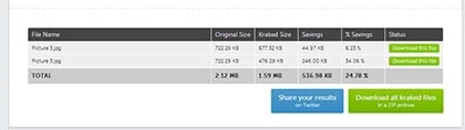 Sau khi tải lên hoàn tất, Kraken sẽ tự động tối ưu hóa hình ảnh của bạn và đưa ra liên kết cho phép người dùng tải về khi đã nén thành công. Dưới đây là hình ảnh minh họa cho khả năng nén của Kraken, nó đã làm việc hoàn hảo để giảm đi khoảng 34% dung lượng mà vẫn giữ nguyên chất lượng ban đầu.