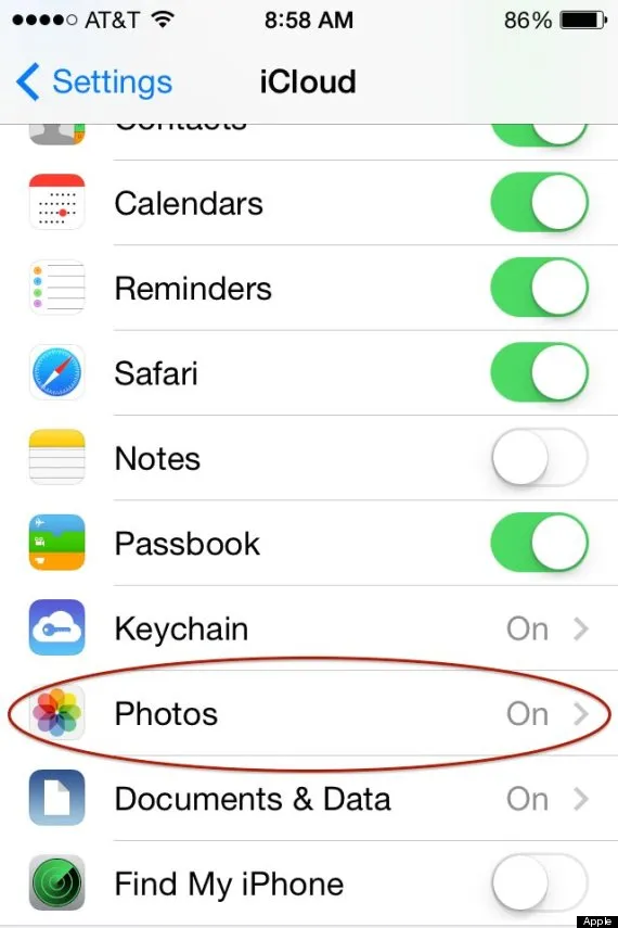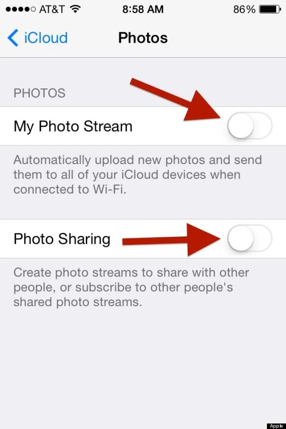 Bước 3: Tắt My Photo Stream và Photo Sharing