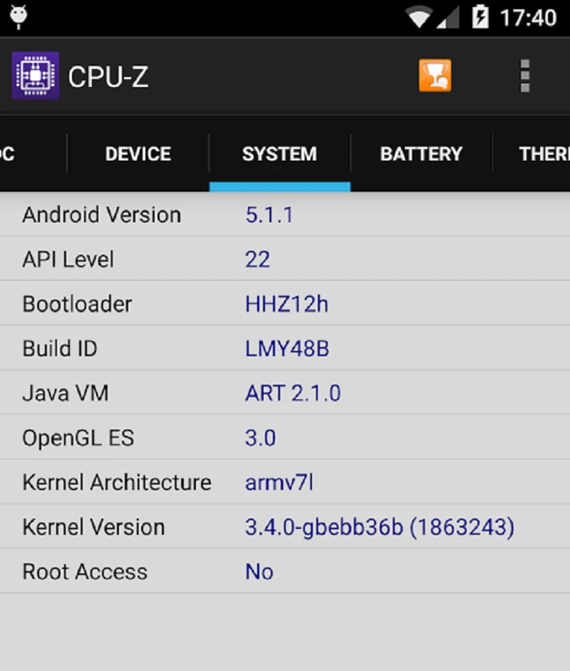 Ứng dụng CPU-Z trên Play Store giúp kiểm tra các thông số của thiết bị.