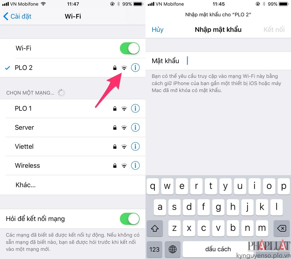 - Bước 1: Đầu tiên, bạn hãy kết nối vào mạng WiFi cần chia sẻ mật khẩu.