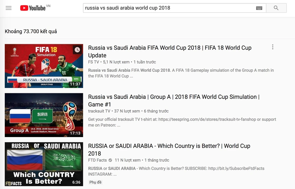 Tất nhiên, nếu YouTube có thể giúp bạn xem trực tiếp World Cup 2018 thì Facebook cũng không ngoại lệ. Tương tự, bạn chỉ cần gõ từ khóa tên đội bóng + vs + tên đội bóng + World Cup 2018 + live sẽ cho ra kết quả theo ý muốn.