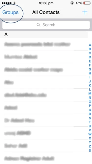 Người dùng có thể sử dụng phương pháp này trên hầu hết các thiết bị đang chạy iOS mà không cần phải cài đặt phần mềm, tuy nhiên nó chỉ cho phép bạn xóa được một người tại một thời điểm. Đầu tiên bạn mở ứng dụng danh bạ (Contacts) từ màn hình chính, xác định vị trí số liên lạc cần xóa bằng cách nhập vào khung tìm kiếm tên hoặc số điện thoại.