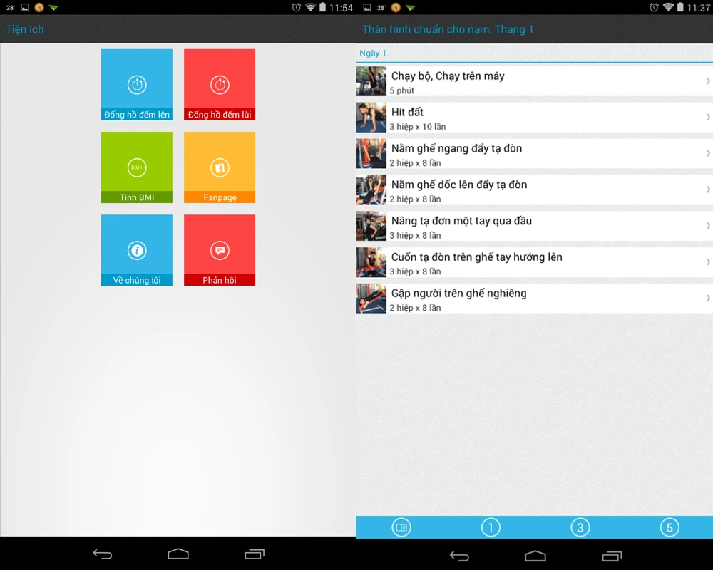 Mục Chương trình sẽ có nhiều bài tập như Giảm cân cho phái đẹp, Thể dục tại văn phòng, Thân hình chuẩn cho nam… với thời lượng tuần và thời gian tương ứng cho từng buổi tập. Nếu không thích tập theo những gì chương trình hướng dẫn, bạn có thể tự tạo cho mình bài tập riêng thông qua biểu tượng dấu cộng.