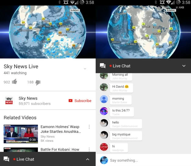 Tính năng Live chat trên Youtube chắc chắn sẽ sớm trở thành một tính năng phổ biến trên phiên bản dành cho Android. Ở phiên bản Youtube 6.0.13 này, người dùng đã có thể trực tiếp bình luận hay trò chuyện khi xem video streaming. Đây là một tính năng có từ khá lâu trên phiên bản Web ( dùng trên máy tính pc hay laptop). Mặc dù Google chưa đưa ra thông báo chính thức nhưng phiên bản này đã được đưa lên trên Google Play.