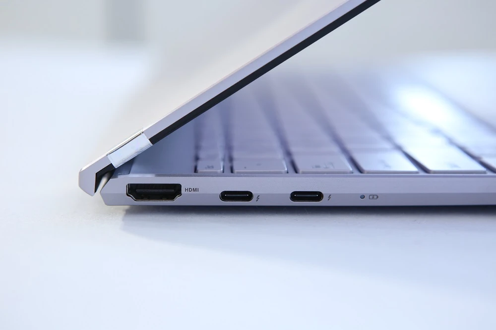 Dù sở hữu độ mỏng 13,9 mm, ZenBook 14 vẫn đảm bảo được hiệu năng của một chiếc laptop văn phòng hiện đại, đi kèm theo đó là hàng loạt cổng kết nối phổ biến như HDMI, USB Type A và hai cổng Thunderbolt 3 tốc độ 40 Gbps.