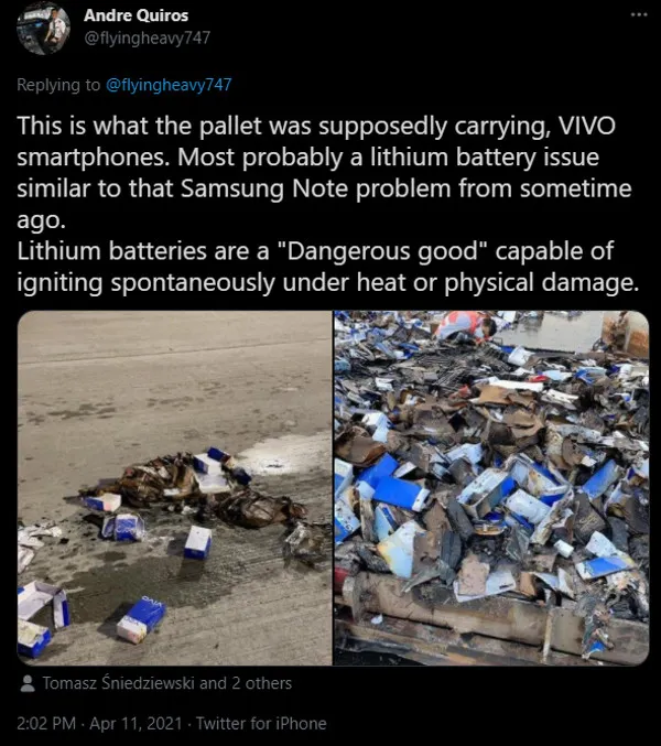 Theo Standard, một vụ cháy lớn đã diễn ra tại sân bay Hồng Kông khi các pallet chứa điện thoại vivo Y20 (và phụ kiện) đã bất ngờ bốc cháy trước khi đưa lên máy bay.