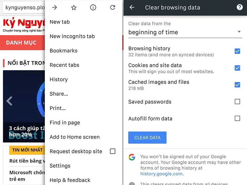 Làm sạch bộ nhớ hay các dữ liệu lưu trên trình duyệt web sẽ giảm thiểu nguy cơ mất cắp tài khoản. Ảnh: M.HOÀNG