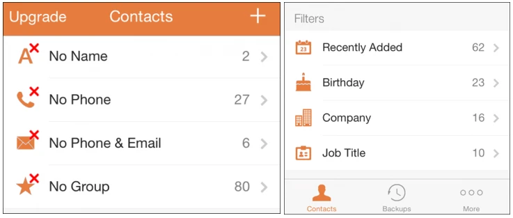 Ngoài ra, nó còn cung cấp các bộ lọc để người dùng có thể xác định được các số liên lạc mới thêm gần đây (liệt kê theo ngày), sắp tới ngày sinh nhật của một ai đó, và thậm chí là ứng dụng sẽ tự động xắp sếp các số điện thoại của những người làm cùng ngành hoặc làm cùng công ty vào một nhóm để bạn dễ quản lý.
