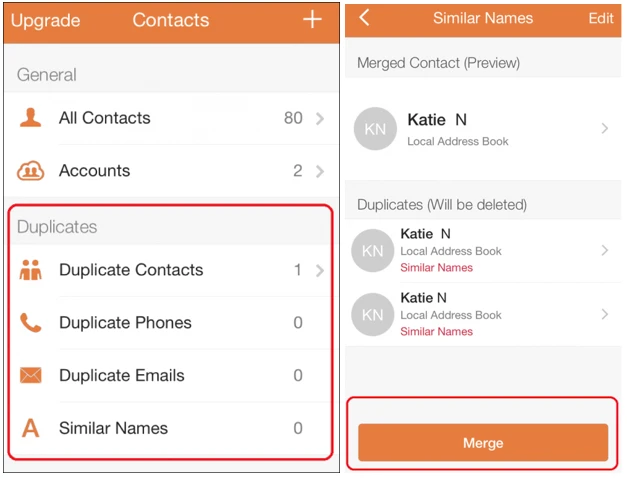Tiếp theo, ứng dụng sẽ tự động quét qua danh sách liên lạc của bạn và cung cấp các số điện thoại bị trùng cùng các hướng giải quyết. Trong nhiều trường hợp, Cleaner sẽ khuyến cáo người dùng nên nhập 2 địa chỉ liên lạc lại thành một thông qua tùy chọn Merge. Nhìn chung, nếu không cần quá nhiều tính năng thì phiên bản miễn phí của Cleaner cũng rất đáng để bạn sử dụng thử.