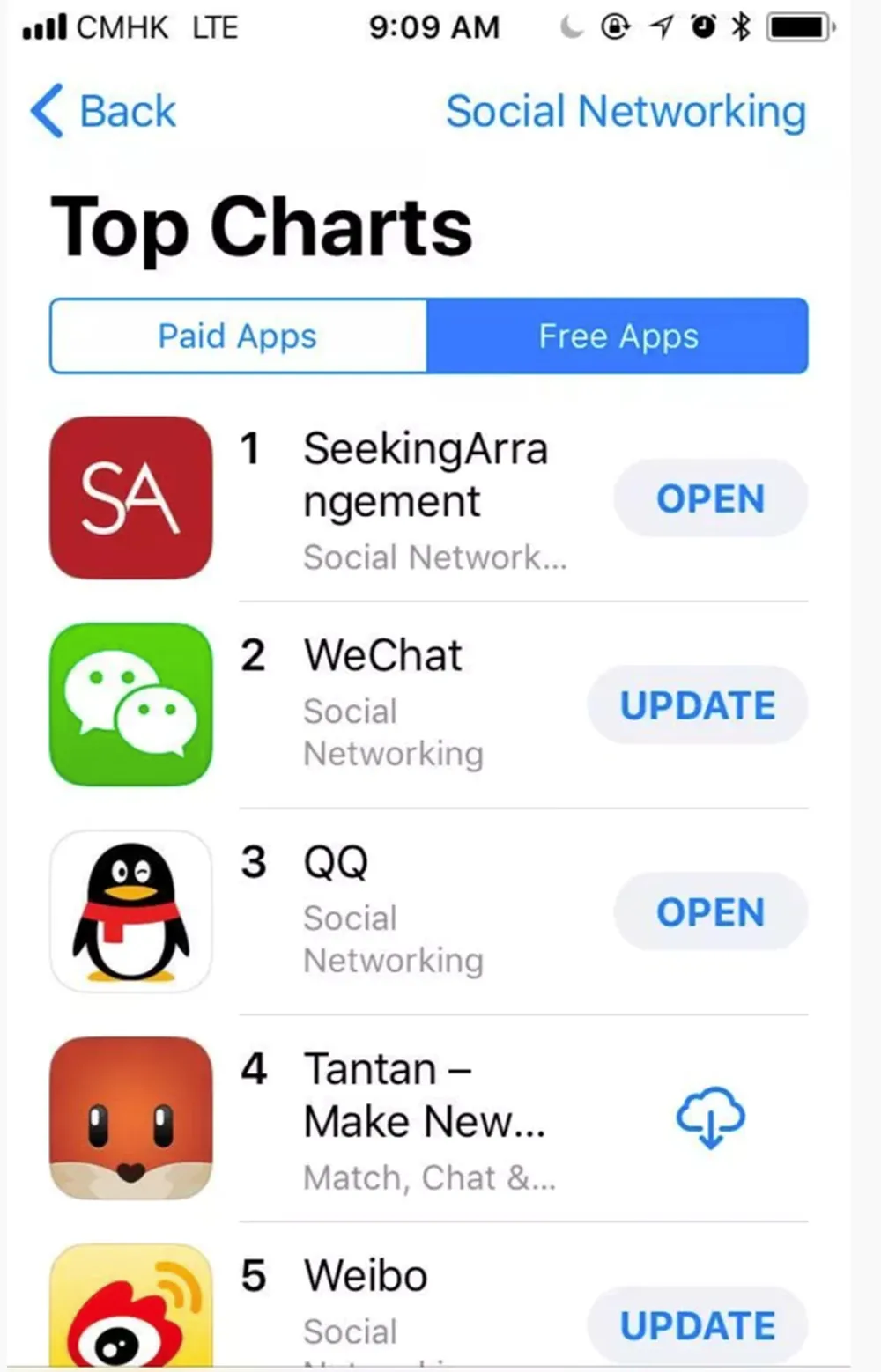 Trong khi đó, theo công ty dữ liệu App Annie, ứng dụng hẹn hò này đã chiếm được vị trí số 1 vào thứ Ba, 22-5, đi lên từ thứ hạng thứ 765. Điều đó đồng nghĩa ứng dụng này đã chiếm lấy vị trí mạng xã hội đứng số 1 trong App Store trên iOS ở Trung Quốc thay cho We Chat.