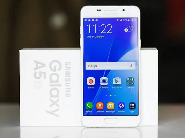 Sản phẩm có thiết kế nguyên khối bằng kim loại, sử dụng mặt kính Gorilla Glass 4 cho khả năng chống trầy xước tốt. Galaxy A5 có màn hình Full HD 5.2 inch, chạy trên nền tảng Android 5.1, được trang bị vi xử lý Exynos 7580 lõi tám, 2GB RAM.