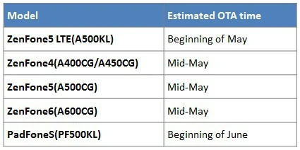 - Zenfone 6 (A600CG): Thời gian update dự tính giữa tháng 5