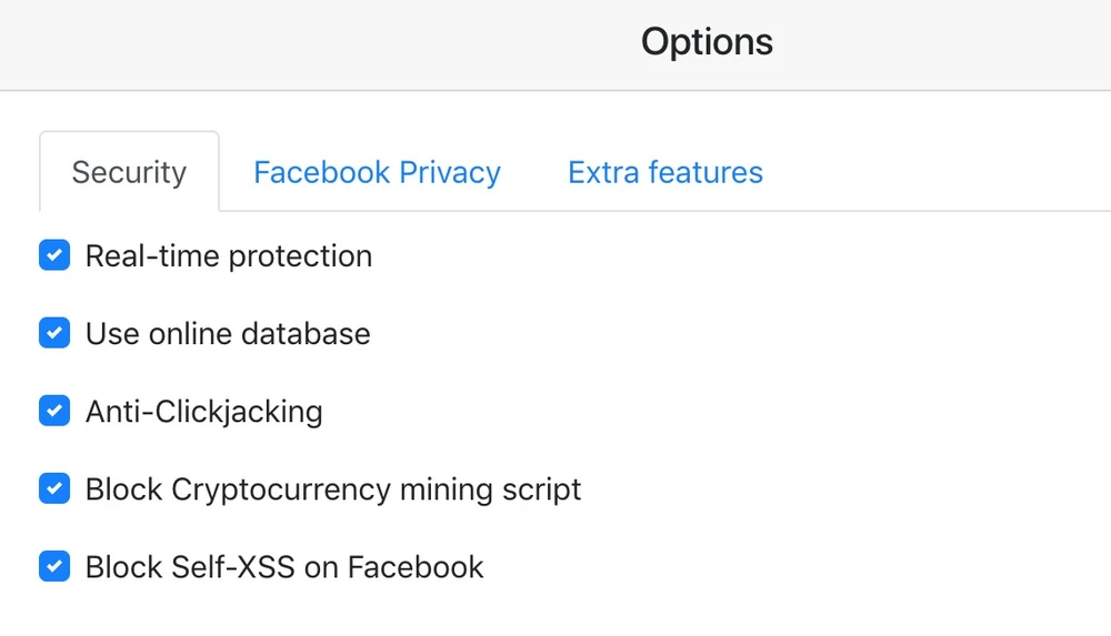 Khi hoàn tất, người dùng chỉ cần nhấp vào biểu tượng của tiện ích ở góc trên bên phải, đánh dấu chọn vào các mục Real-time protection (bảo vệ theo thời gian thực), Use online database (sử dụng dữ liệu trực tuyến), Anti-Clickjacking (chặn các nút Like ẩn trên trang web bất kì), Block Cryptocurrency mining script (chặn mã độc đào tiền ảo) và Block Self-XSS on Facebook. Kể từ lúc này, mỗi khi truy cập nhầm vào các trang web độc hại hoặc giả mạo giao diện Facebook, J2TEAM Security sẽ tự động hiển thị cảnh báo và yêu cầu người dùng quay trở lại.