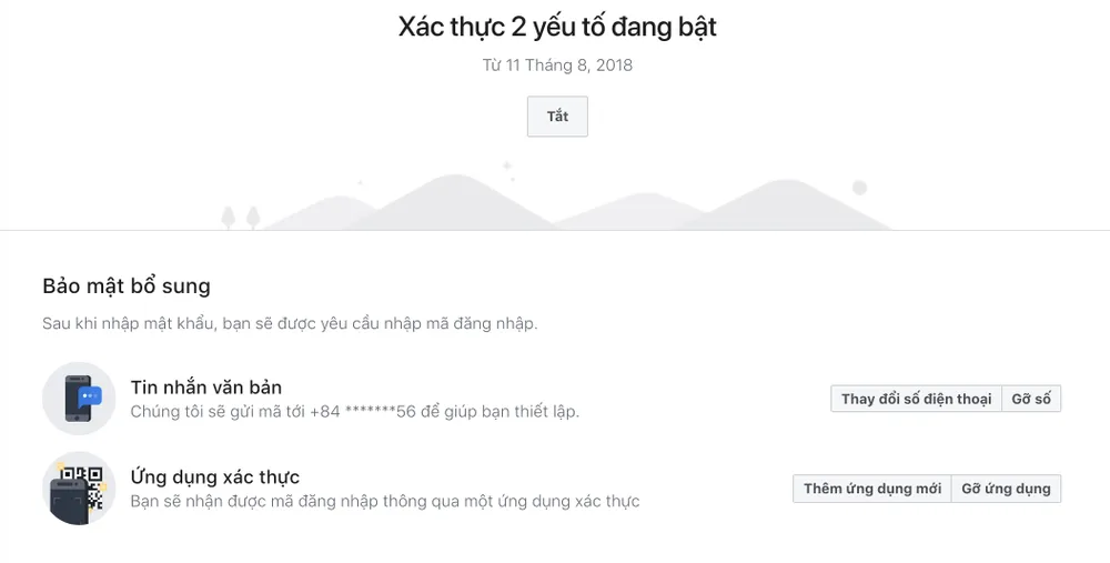Để đảm bảo an toàn cho tài khoản cá nhân, bạn nên kích hoạt tính năng bảo mật hai lớp trên Facebook bằng cách vào Settings (cài đặt) > Security and Login (bảo mật và đăng nhập) > Use two-factor authentication (sử dụng xác thực 2 yếu tố) > Edit (chỉnh sửa). Tại đây, bạn sẽ có bốn lựa chọn để bảo mật tài khoản, tuy nhiên trong khuôn khổ bài viết này chúng ta chỉ đề cập đến Text Message (tin nhắn văn bản) và Authentication App (ứng dụng xác thực).