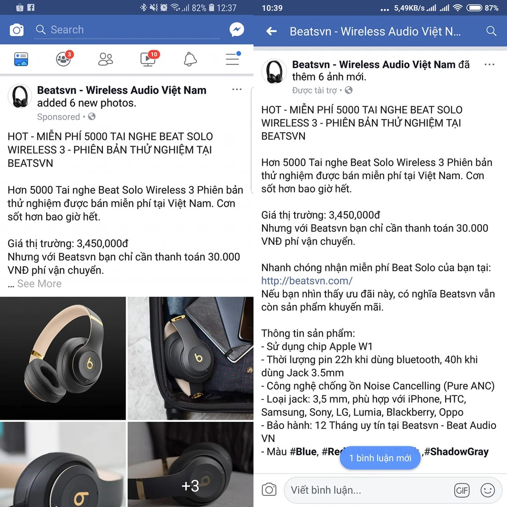 Dạo gần đây có khá nhiều người chia sẻ bài viết tặng 5.000 tai nghe Beats Solo Wireless 3 miễn phí (chỉ cần thanh toán tiền vận chuyển). Để nhận được quà, bạn phải chuyển vào tài khoản ngân hàng của kẻ gian 30.000-90.000 đồng, sau đó hệ thống sẽ xác nhận lại và gửi hàng.