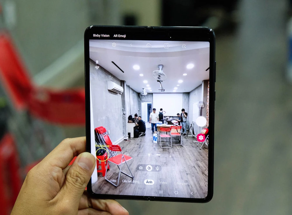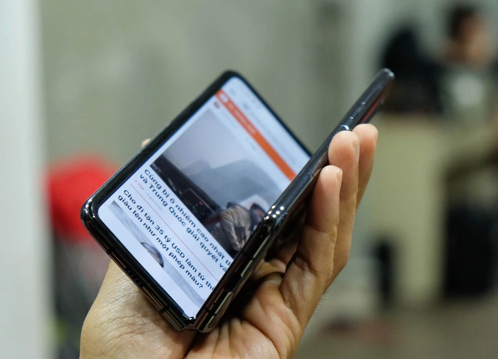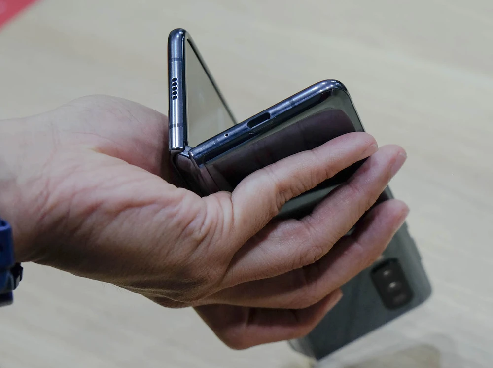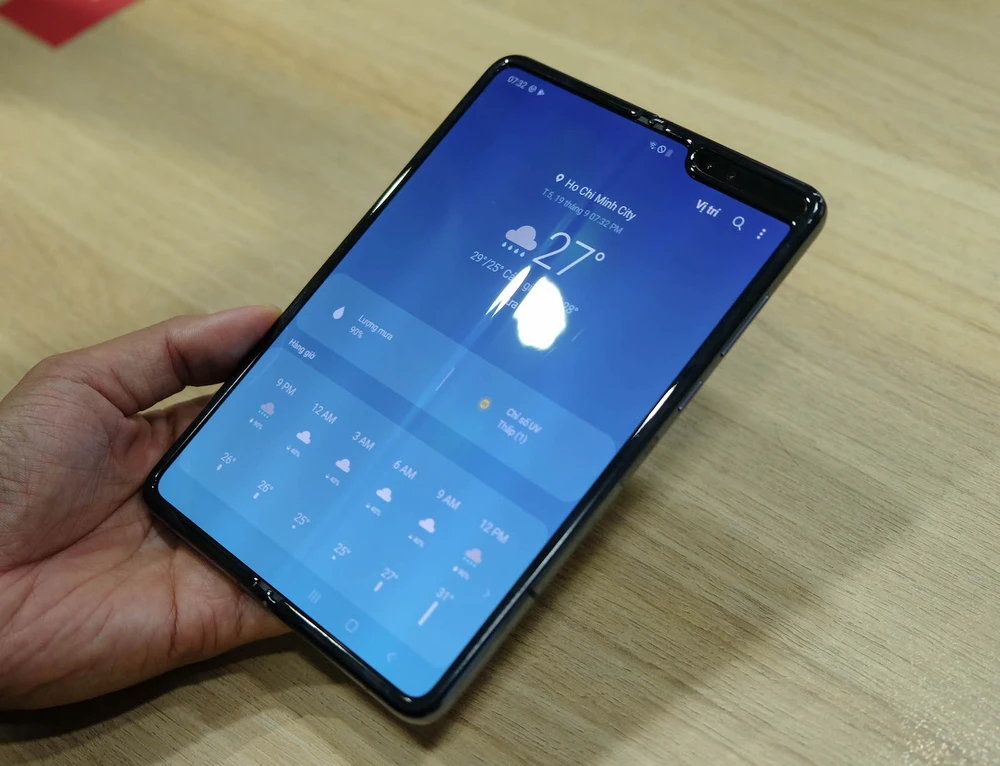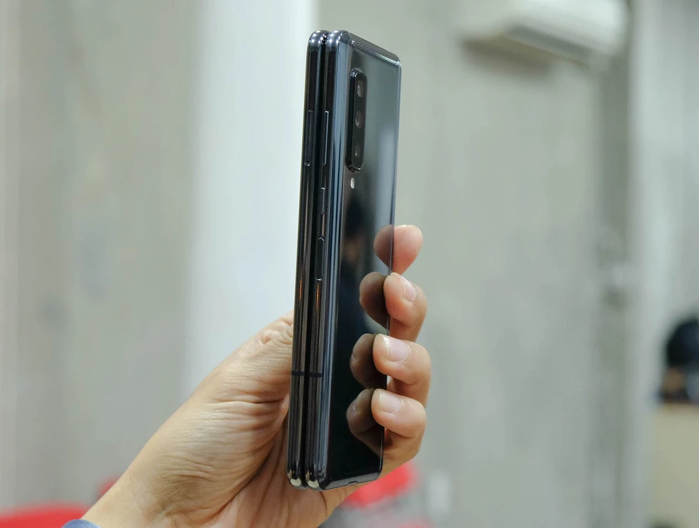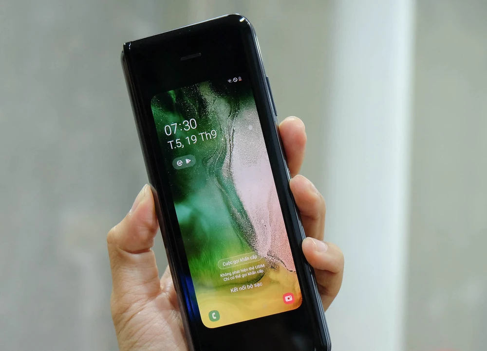 Khác với Huawei và Mate X, Galaxy Fold của Samsung sử dụng thiết kế “innie” (khi gập lại, màn hình chính ở bên trong). Về cơ bản, máy có hai màn hình, một màn hình Infinity Flex kích thước lớn 7,3 inch có thể uốn dẻo và một màn hình bên ngoài kích thước 4,6 inch, có thể thoải mái sử dụng bằng một tay khi gập máy lại.