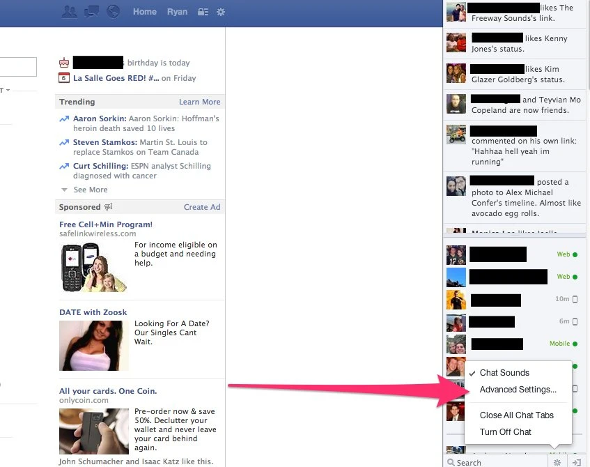 Đến mục chat trong Facebook, ở cuối màn hình, click vào biểu tượng tùy chọn và truy cập vào cài đặt nâng cao (advanced settings).