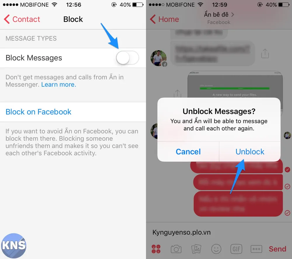 - Bước 3: Một khi tính năng này được kích hoạt, người bị chặn sẽ không thể gửi tin nhắn cho bạn và ngược lại. Nếu muốn vô hiệu hóa, người dùng chỉ cần nhấp vào tùy chọn Unblock trong cửa sổ thông báo.