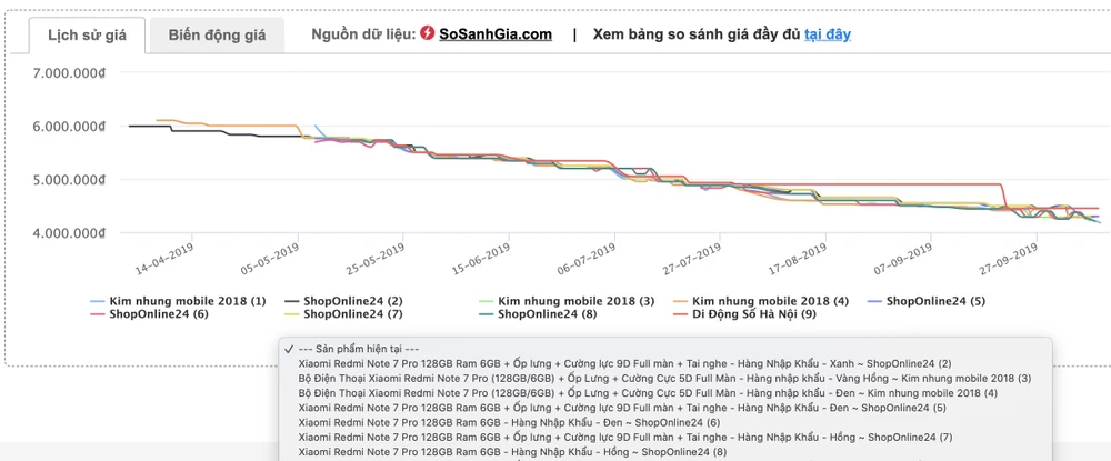 Để so sánh giá một món hàng giữa nhiều cửa hàng, bạn chỉ cần bấm vào menu nhỏ ở ngay bên dưới và chọn Xem tất cả hoặc bấm vào tên cửa hàng ngay trên biểu đồ.