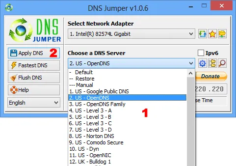 Nếu đang sử dụng Windows, bạn hãy tải về công cụ DNS Jumper tại địa chỉ https://goo.gl/sPG8av. Ứng dụng được cung cấp hoàn toàn miễn phí, hỗ trợ chuyển đổi qua lại giữa 30 dịch vụ DNS khác nhau chỉ với một cú nhấp chuột.
