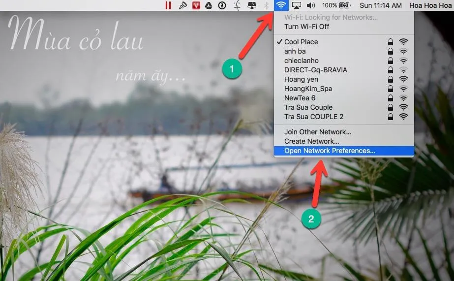 Nếu đang sử dụng máy Mac, bạn hãy nhấp vào biểu tượng mạng ở góc trên bên phải và chọn Open Network Preferences > Advanced.