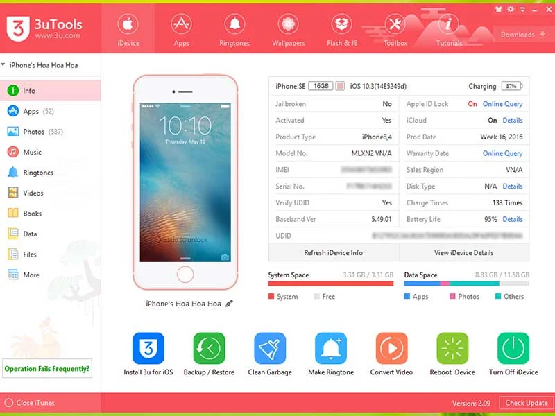Để kiểm tra số lần sạc trên iPhone, bạn hãy cài đặt phần mềm 3uTools tại http://www.3u.com/ và kết nối thiết bị vào máy tính thông qua cọng cáp USB. Tiếp theo, bạn hãy chuyển sang mục Info và Charge Times chính là số lần sạc của iPhone.