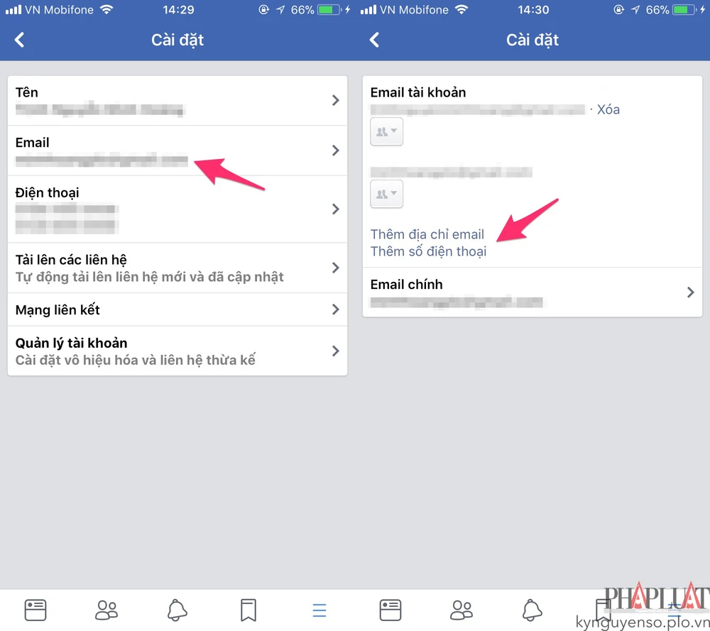 - Bước 2: Tiếp theo, bạn hãy bấm vào mục General (chung) > Email > Add Phone Number (thêm số điện thoại) thay vì thêm địa chỉ email bởi phương thức này sẽ không yêu cầu người dùng nhập mật khẩu Facebook để xác nhận.