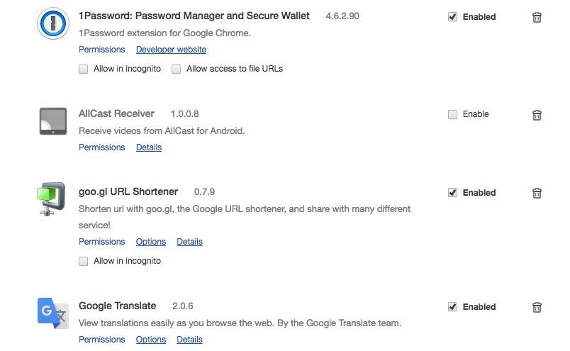 Để gỡ cài đặt các phần mềm không cần thiết, bạn có thể sử dụng CCleaner (Windows) hoặc CleanMyMac (Mac) thay vì dùng Control Panel mặc định. Đối với trình duyệt, bạn chỉ cần gõ vào thanh địa chỉ dòng lệnh chrome://extensions, sau đó nhấn vào biểu tượng thùng rác để gỡ bỏ.