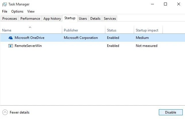 Thời gian mở máy sẽ kéo dài lâu hơn nếu có quá nhiều ứng dụng khởi động cùng hệ thống. Để vô hiệu hóa, bạn nhấn phải chuột vào thanh Taskbar và chọn Task Manager, sau đó chuyển sang thẻ Startup, chọn các ứng dụng không cần thiết và nhấn Disable.